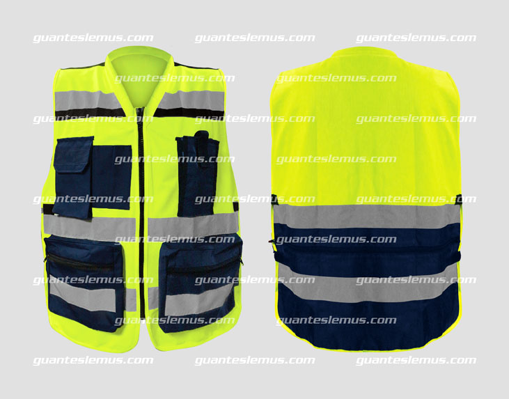 Chaleco de alta visibilidad ligero y práctico fabricado 100% en poliéster. Con cintas reflejantes de 2″ en el frente y en la espalda- Cierre industrial reforzado y cuatro ajustes laterales en velcro. Ideal para ingenieros, arquitectos o supervisores de obra. Cuenta con cinco compartimento frontales: 2 de 21×8 cm, uno de 10×16 cm, uno de 8.5×14 cm y uno de 10×17 cm. También cuenta con un compartimento grande en la parte trasera de 57×19 cm. Disponible en color amarillo y naranja.