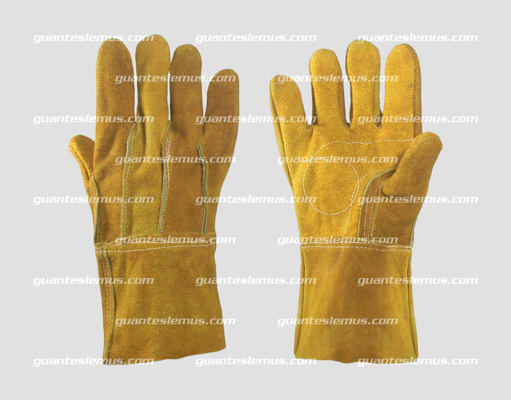 Confeccionado con carnaza amarilla de res, cosido con hilo de algodón-poliéster. 14” pulgadas de largo. Ofrece muy buena resistencia, lo que permite al usuario trabajar en condiciones de seguridad a un precio económico. Guante hecho para el soldador.