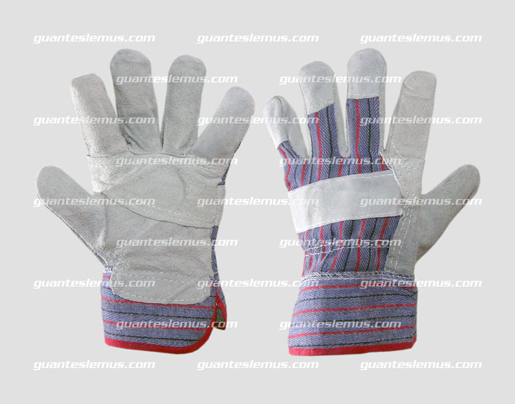 Guante de carnaza de res con refuerzo de 2”. Tela rayada tipo mezclilla. Forro interno. La protección en nudillos y uñeros brinda larga duración al guante.