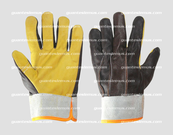 Guante de piel suave, cómoda y muy duradera. Fabricado con palma y dorso de piel de res. El dorso suele ser de diferente color y el puño suele ser de carnaza. Cómodo e ideal para operadores de maquinaria.