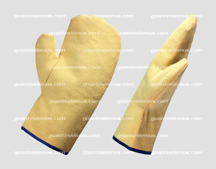 Manoplas resistentes al calor. Para aplicaciones en el manejo de objetos de metal hasta 300º C. Elaborado en Kevlar®/Fibra de Aramida, color amarillo, cosido con hilo Kevlar 30/4 cabos. Forro interior 100% algodón. Largo de 45 cm. Especial para fundidoras.
